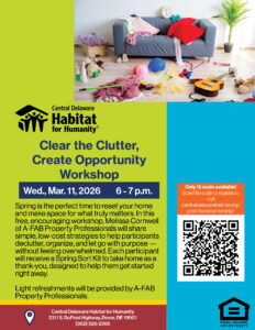 Spring is the perfect time to reset your home and make space for what truly matters. In this free, encouraging workshop, Melissa Cornwell of A-FAB Property Professionals will share simple, low-cost strategies to help participants declutter, organize, and let go with purpose — without feeling overwhelmed. Each participant will receive a Spring Sort Kit to take home as a thank-you, designed to help them get started right away.