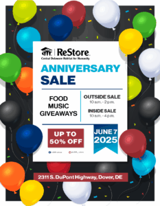 Only at CDHFH ReStore, 2311 S. DuPont Highway, Dover on June 7, 2025!